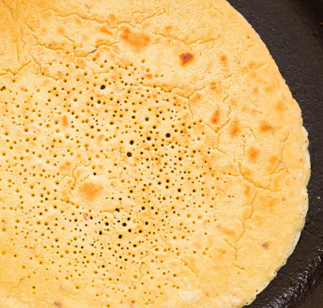 To cook, grease a pan (cast iron works best for these but isn’t necessary), pour on some batter & cook on a medium heat for 2-3 minutes on each side.
